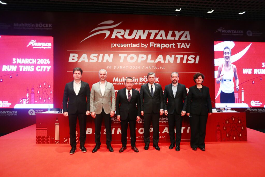 Antalya Büyükşehir Belediyesi ev sahipliğinde bu yıl 19’uncu kez yapılan Runtalya Maratonu için düzenlenen basın toplantısına Antalya Valisi Hulusi Şahin, Antalya Büyükşehir Belediye Başkanı Muhittin Böcek, TURSET Genel Müdürü Özgür Emeklioğlu, Fraport TAV Genel Müdürü Deniz Varol ve sponsorlar katıldı. Antalya Valisi Hulusi Şahin, 18 yıldır büyük bir başarıyla yürütülen bu organizasyonun bugünlere gelmesinde emeği geçen herkese teşekkür ederek, “Bu yıl 19’uncusu yapılıyor. Hiç ara vermemiş çok değerli bir organizasyon. Bu tür etkinlikler kurumsal bir kültür ile oluşur ve 18 yıldır devam ediyor. Geçtiğimiz yıl ülkemizde yaşanan depreme rağmen ara verilmedi ve geçen yıl koşunun gelirleri deprem bölgesine bağışlandı. 18 yıl önce 450 kişiyle başlayan organizasyonun bugünlere gelmesi çok önemli. Antalya’ya yakışan çok değerli bir organizasyon.10 bin sporcuyu misafir edeceğiz” dedi.