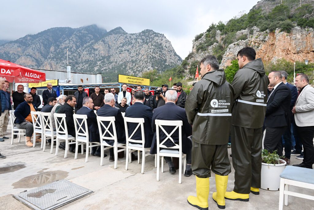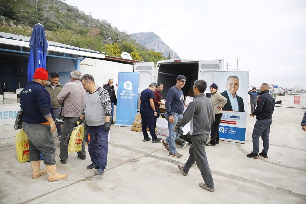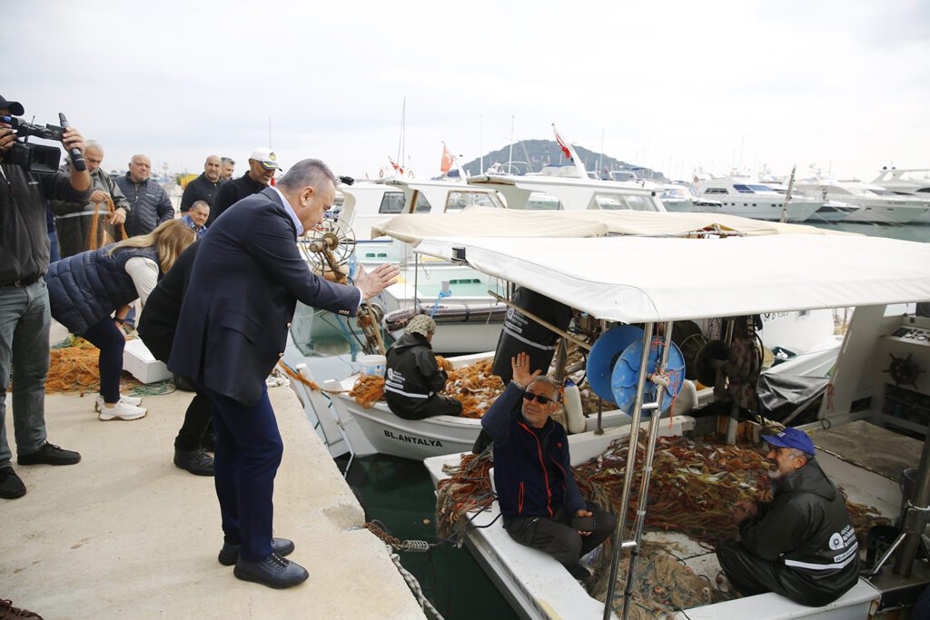 Antalya Büyükşehir Belediye Başkanı Muhittin Böcek, ziyaretinin ardından balıkçı esnafı ile birlikte Büyükşehir Belediyesi Gemi Denetim Teknesini inceledi. Daha sonra balıkçı esnafına Büyükşehir Belediyesi Tarımsal Hizmetler Dairesi Başkanlığı tarafından çizme ve yağmurluk verildi.