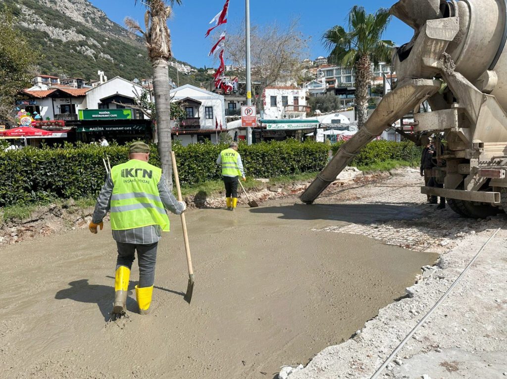 Çalışmaların kısa sürede tamamlanmasının hedeflendiği belirtildi. (Kaş Belediyesi Basın Servisi)