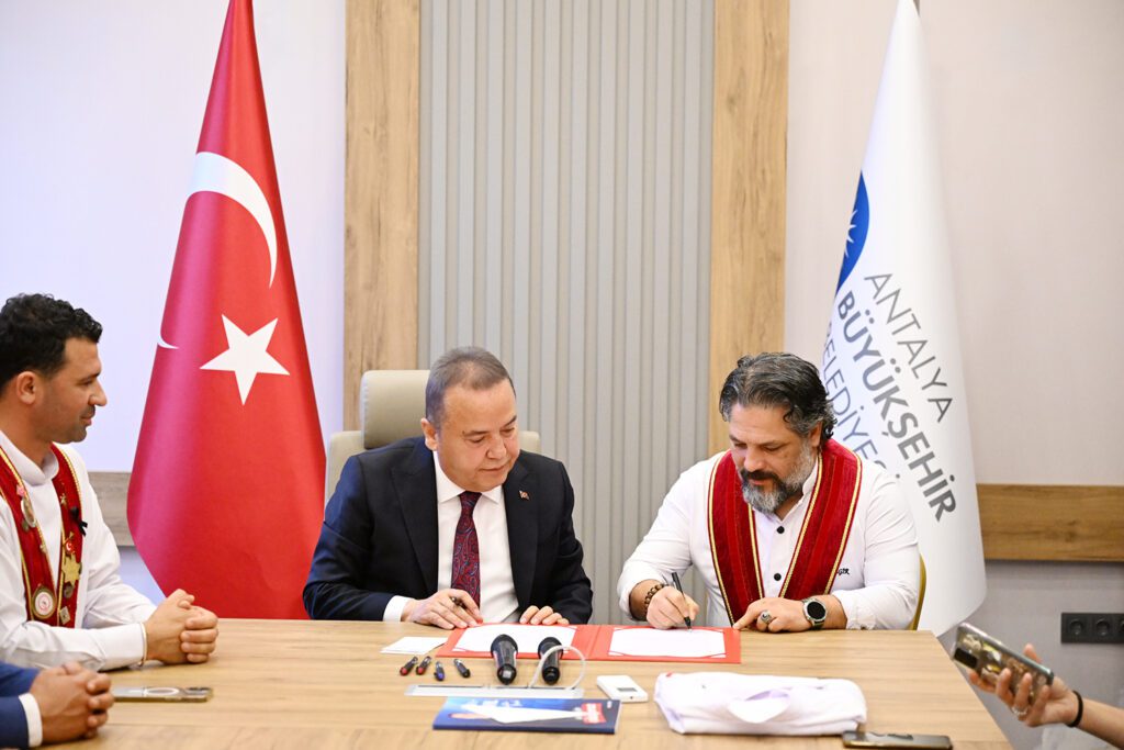Antalya Büyükşehir Belediyesi ile Antalya Meslek Odaları Eşgüdüm Kurulu ve Akdeniz Gastronomi ve Mutfak Yıldızları Derneği arasında işbirliği protokolü imzalandı. “Ben, sen yok biz varız. Biz birlikte yaparız” anlayışıyla 5 yıl boyunca Antalya’yı ortak akılla yönettiklerini söyleyen Büyükşehir Belediye Başkanı Muhittin Böcek, “Antalya’yı birlikte yönetmeye devam edeceğiz” dedi.
