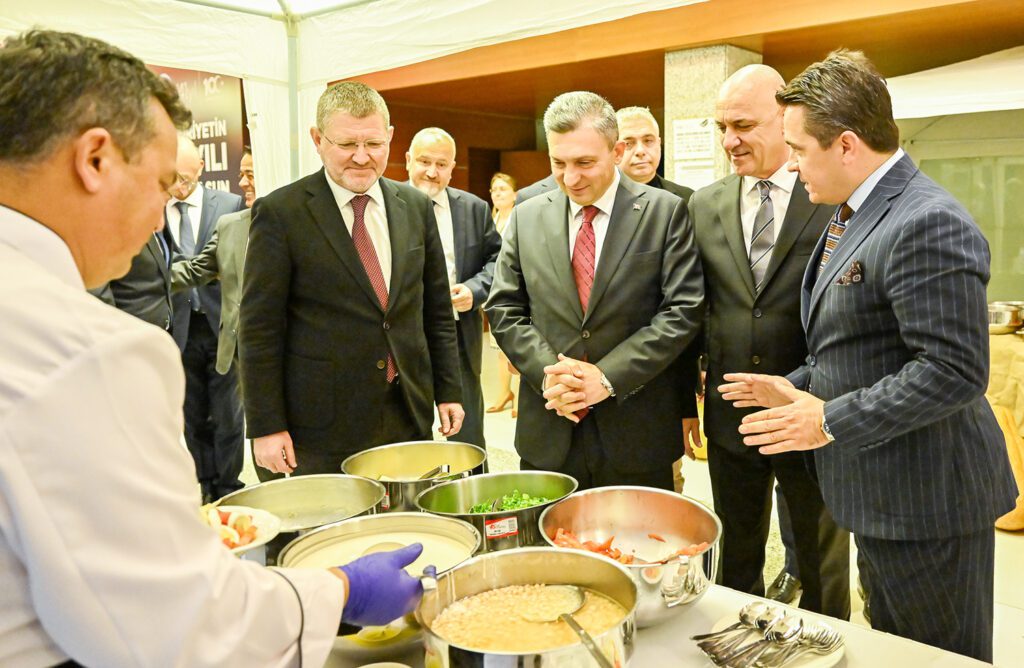 İftar programı kapsamında misafirlere Antalya’nın coğrafi işaretli ürünlerinde oluşan bir menü sunuldu. Başkan Bahar ve Antalya Valisi Hulusi Şahin, Antalya Ticaret ve Sanayi Odası tarafından tescil ettirilen geleneksel ürünlerin bulunduğu coğrafi işaretli ürünlere ait stantları ziyaret etti. Antalya’nın coğrafi ve kültürel değerlerinin tescil ettirilmesi ve geleneksel ürünlerin tanıtılması konusunda gerçekleştirilen çalışmalar hakkında bilgi veren Başkan Ali Bahar, “Geleneksel ürünlerin coğrafi işaretlerle tescil edilmesi, hem bu ürünlerin niteliğinin korunmasına hem de bölgenin ekonomik kalkınmasına katkı sağlıyor. Odamızın bu konudaki iş birlikleri gelecek nesillere aktarılacak olan kültürel mirasın korunması ve geliştirilmesi için önemli. Antalya’mızın sadece bir turizm merkezi olmadığı aynı zamanda zengin kültürel mirasa sahip bir şehir olarak da tanıtılmasına yardımcı oluyor” dedi.