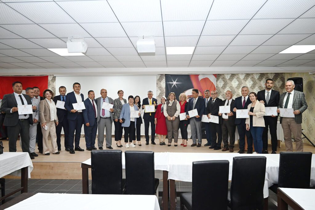Mazbata töreninde Başkan Topaloğlu, meclis üyeleri, muhtarlar ve azaları mazbatalarını İlçe Seçim Kurulu Başkanı Gülser Güzeloğlu Ahlat’tın elinden aldı.