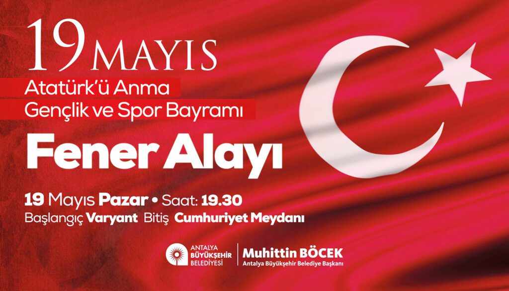 Antalya Büyükşehir Belediyesi 19 Mayıs Atatürk’ü Anma Gençlik ve Spor Bayramı’nı büyük bir coşkuyla kutlamaya hazırlanıyor. Antalyalıların katılımıyla düzenlenecek Fener Alayı’nın yanı sıra Buray, Burak Yeter ve Yüzyüzeyken konuşuruz konserleri de kutlamalara renk katacak.