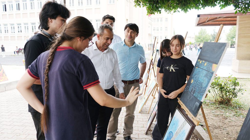 Öte yandan Başkan Yardımcısı Baytekin, öğrencilerin yaptığı resimlerin sergilendiği alandaki resimleri inceleyerek okul müdürü Uslu’dan bilgi aldı.