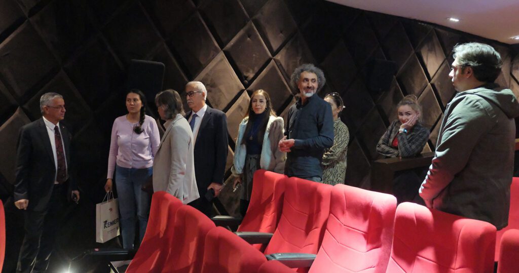 Ziyaret sonrası Başkan Topaloğlu, misafirlere Kemer Belediyesi Sinema ve Tiyatro Salonu’nu gezdirerek salon hakkında bilgi verdi.