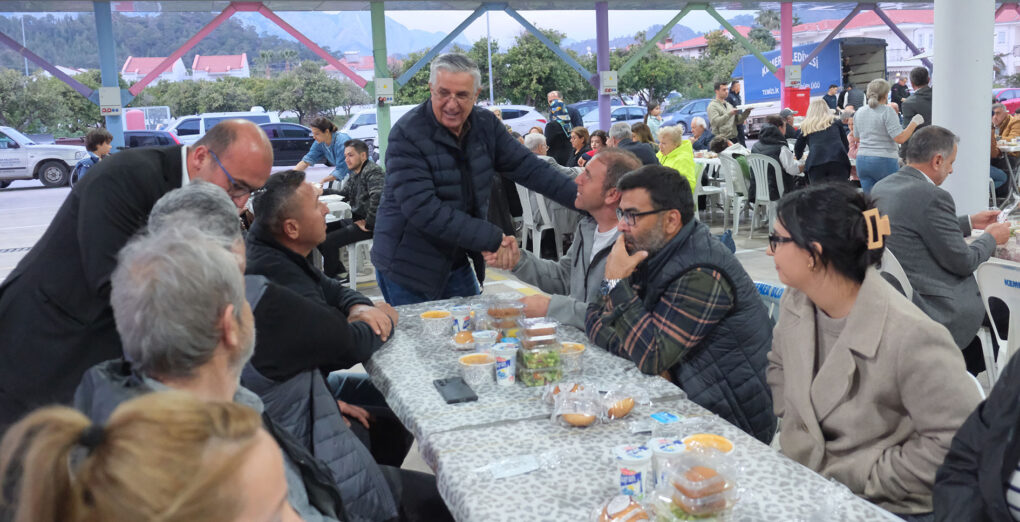 Kemer Belediye Başkanı Necati Topaloğlu’nun “Her mahalleye bir kapalı pazar yeri” projesi kapsamında Çamyuva Mahallesi’nde vatandaşların hizmetine kazandırdığı kapalı pazar alanında düzenlenen iftar yemeğine, Başkan Topaloğlu’nun yanı sıra eşi Fikriye Topaloğlu, CHP Kemer İlçe Başkanı Sedat Karakaya ve ilçe yönetimi, Kemer Belediye Başkan Yardımcıları Emin Gül, Semih Top, Mehmet Derya Baytekin, Kemer Belediye Meclis Üyeleri Mustafa Bilici, Mustafa Çelik, Ali Akar, Mehmet Akın, Kemer Belediyesi Tekirova Mahalle Sorumlusu Recep Yılmaz, Çamyuva Mahalle Sorumlusu Uğur Keskin, Kuzdere Mahalle Sorumlusu Ayhan Yıldırım, Beldibi Mahalle Sorumlusu Cumali Akdağ, belediye birim müdürleri ve vatandaşlar katıldı.