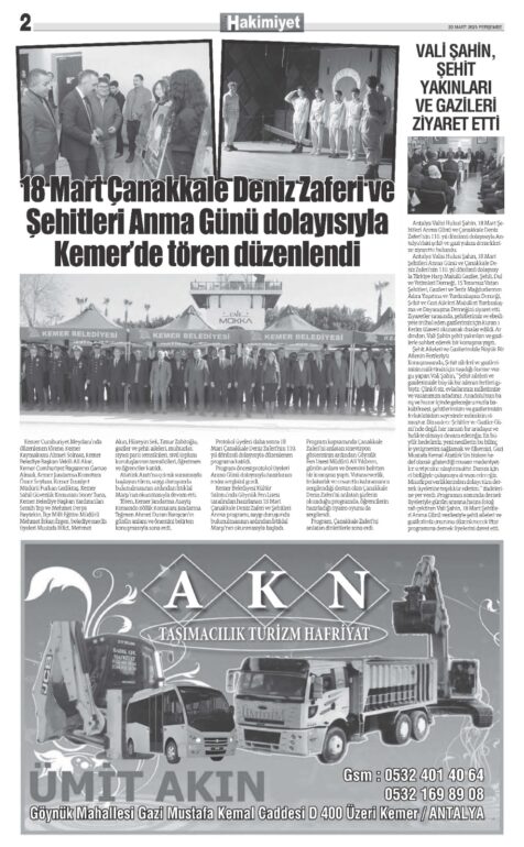20 MART 2025 KEMER HAKİMİYET GAZETESİ