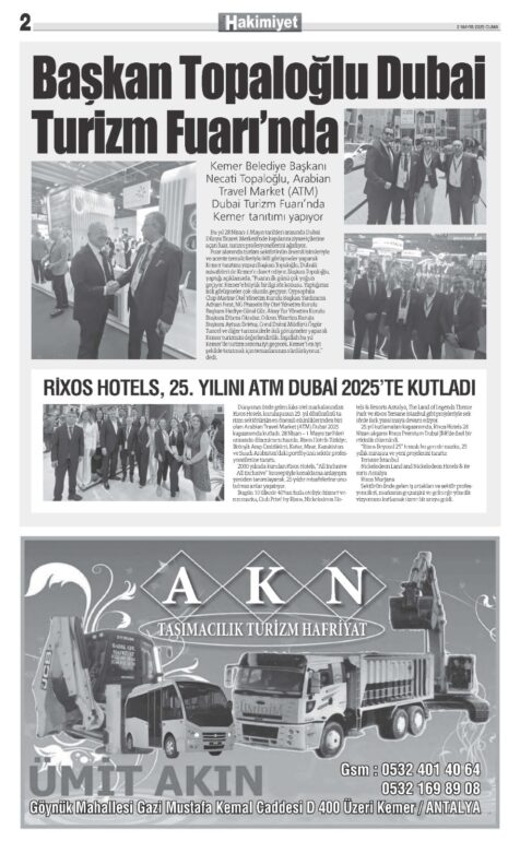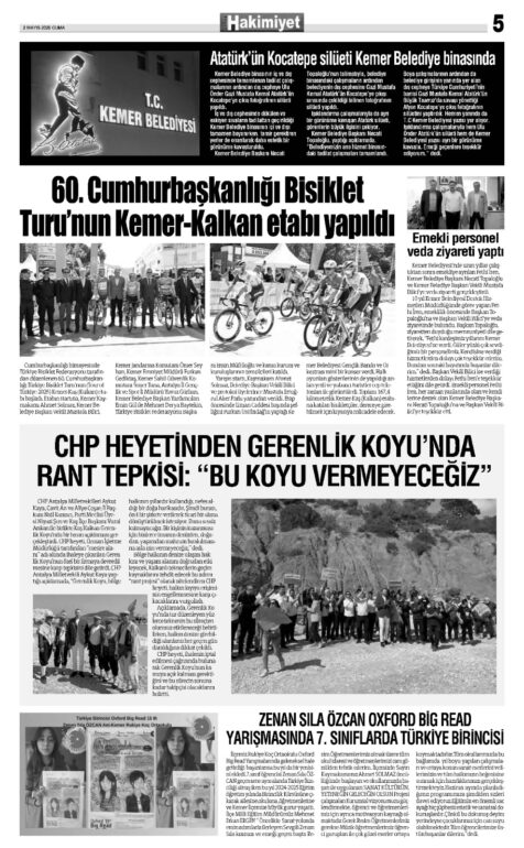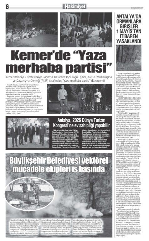 2 MAYIS 2025 KEMER HAKİMİYET GAZETESİ