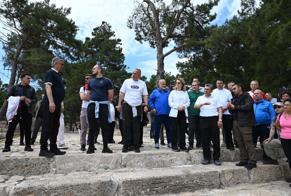 Yaklaşık 1,5 saatlik yürüyüşün ardından Phaselis Antik Kenti’ne ulaşan heyet, daha sonra antik kenti gezdi. Burada bir açıklama yapan Vali Hulusi Şahin; “Trekking rotalarının Likya Yolu meşhur 700 kilometrenin üzerinde bir yol ve bunun önemli bir kısmı Antalya’da. Bölgenin trekking rotalarını sponsorlarımızla, paydaş kurumlarımızla beraber yenilemek üzere bir proje başlattık. Bu proje dahilinde tüm rotadaki yönlendirme işaretlerini yeniliyoruz ve böylece çok daha sistemli, çok daha sağlıklı bir doğa turizmi ve trekking rotası oluşturmayı hedefliyoruz. 10 binin üzerinde doğasever, bu bölgeyi kullanıyor. Bu yeterli değil bunu arttırmak içinde yoğun bir çaba içerisindeyiz.” dedi.