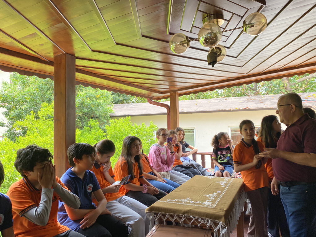 Öğrenciler, Kültür Evi’ndeki değerli eşyalar, tarihi fotoğraflar ve birçok objeyi tek tek inceleyerek, Kar’ın anlattıklarını dikkatle dinledi.