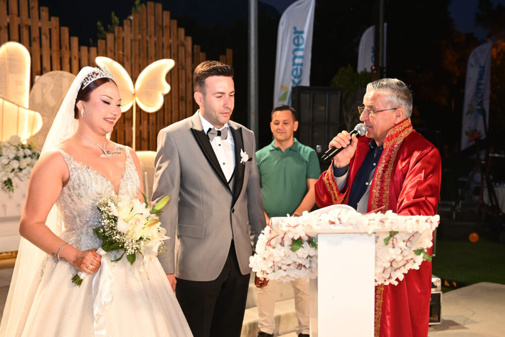 Sezonun ilk kır düğününde genç çiftler İlayda ve Ali’nin nikahını ise Kemer Belediye Başkanı Necati Topaloğlu kıydı.