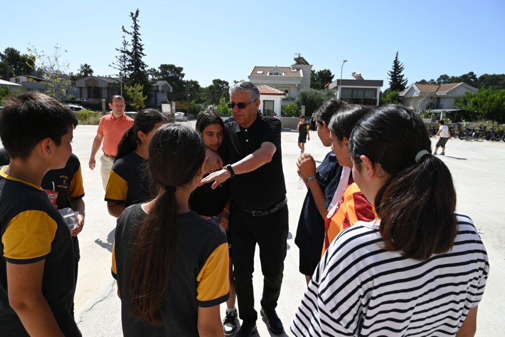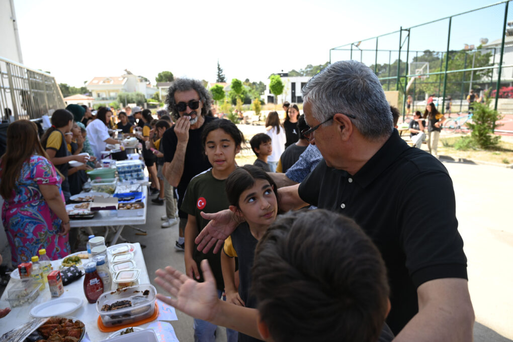 Göynük Ortaokulu tarafından okul bahçesinde düzenlenen etkinliğe katılan Başkan Topaloğlu, okul müdürü Duran Benli ve öğretmenlerle sohbet etti.