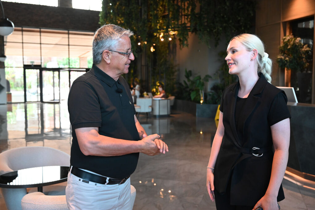 Sosyal medya fenomeni Niehus’u karşılayan Başkan Topaloğlu ve beraberindekiler, sosyal medya fenomeni ile bir süre sohbet etti.