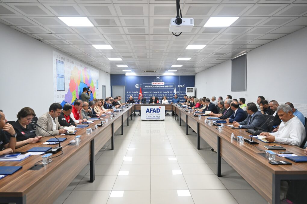 AFAD İl Müdürlüğü Afet Koordinasyon Merkezi’nde düzenlenen toplantıya Vali Hulusi Şahin, Vali Yardımcısı Tahsin Aksu, Antalya Büyükşehir Belediyesi Genel Sekreteri Cansel Çevikol Tuncer, İl Jandarma Komutanı Tuğgeneral Tarık Hekimoğlu, İl Emniyet Müdürü İlker Arslan, 3. Piyade Eğitim Tugayı Komutanı Piyade Albay Hüseyin Yılmaz, AFAD İl Müdürü Necmi Erçin ve ilgili kurum ve kuruluşların yetkilileri ile STK temsilcileri katıldı.