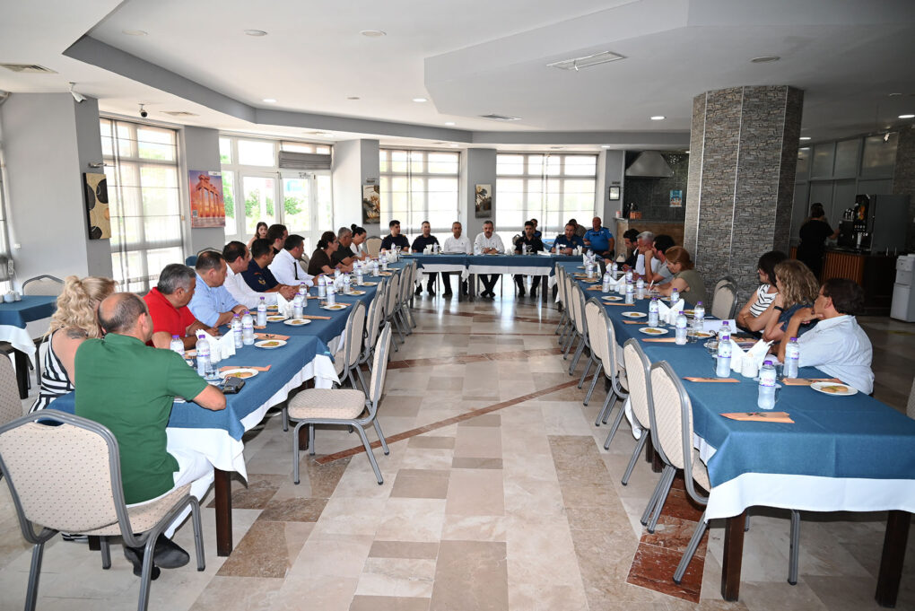 Kemer Uygulama Oteli’nde düzenlenen toplantıya, Kaymakam Solmaz’ın yanı sıra Kemer Belediye Başkan Yardımcısı Mehmet Derya Baytekin, Kemer Jandarma Komutanı Ömer Seyhan, Kemer Emniyet Müdürü Furkan Gediktaş, Kemer Sahil Güvenlik Komutanı Soner Tuna, Kemer Belediyesi Zabıta Müdürü Erhan Kurtoğlu, kamu kurum ve kuruluşlarının temsilcileri katıldı.