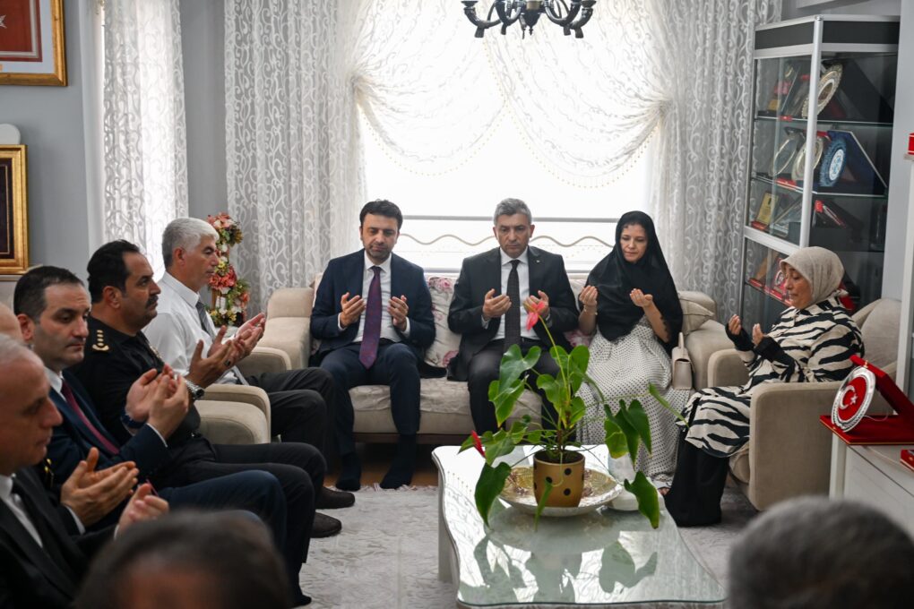 Kabir ziyaretinin ardından Vali Şahin, şehidimizin ailesini evlerinde ziyaret ederek taziye dileklerini iletti ve sabır temennisinde bulundu.