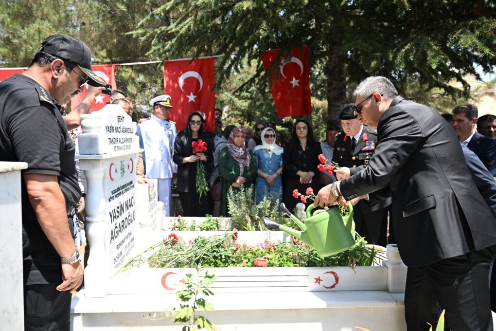 Şehitlik programının ardından Vali Hulusi Şahin ve protokol üyeleri, 15 Temmuz darbe girişiminde hainler tarafından açılan ateş sonucu şehit olan Ankara Üniversitesi Hukuk Fakültesi öğrencisi Yasin Naci Ağaroğlu’nun Korkuteli ilçesindeki kabrini ziyaret etti. Şehidimizin mezarı başında dualar okunarak karanfiller bırakıldı.