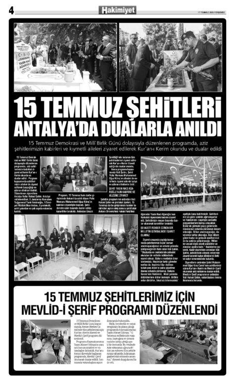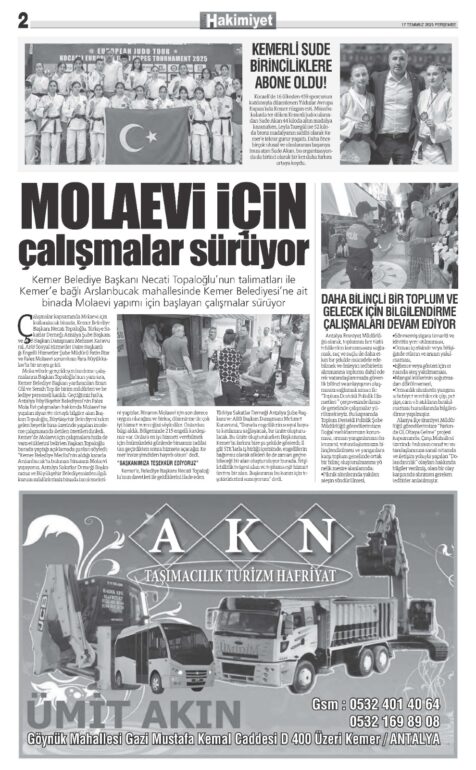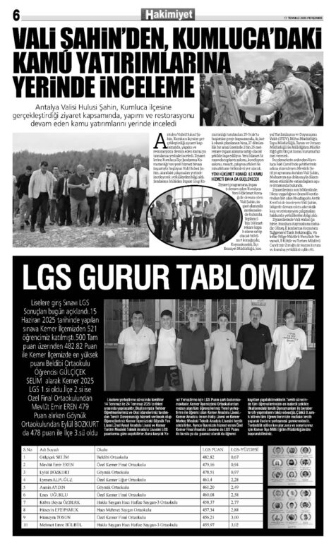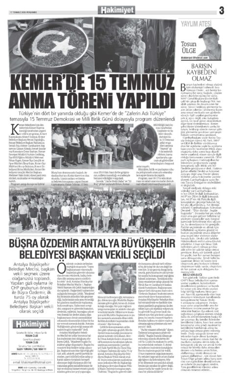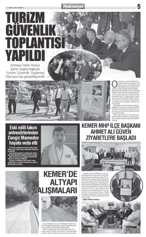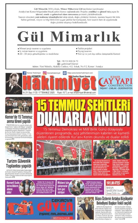 17 TEMMUZ 2025 KEMER HAKİMİYET GAZETESİ