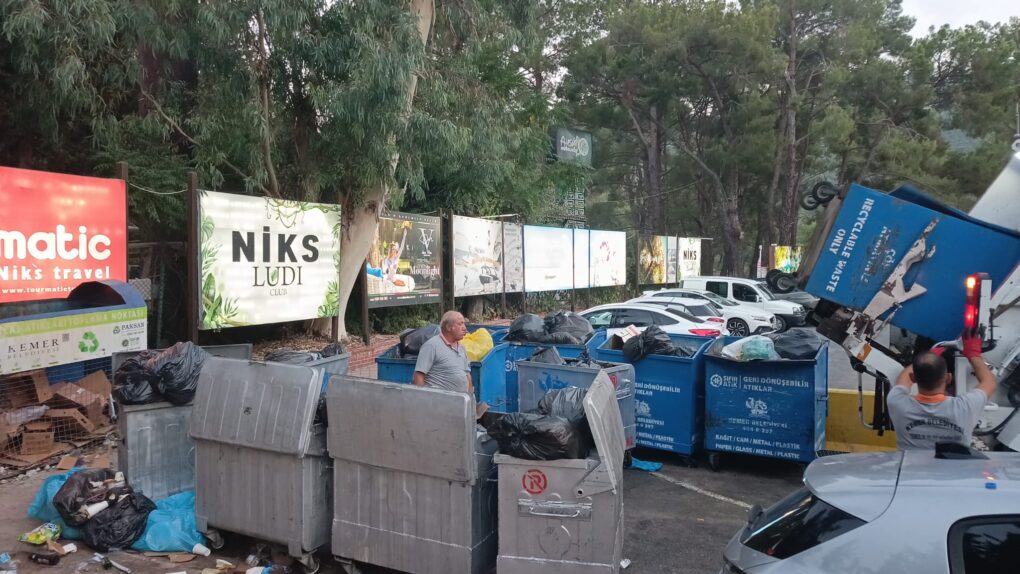06:00-14:00 ve 16:00-00:00 arası ayrı bir ekip ise otellerden atık çöpleri topluyor. Toplanan çöpler, Kuzdere Mahallesinde bulunan Büyükşehir Belediyesi 75.Yıl Katı Atık Tesisinde hazır bekleyen tıra boşaltılıyor.