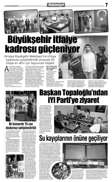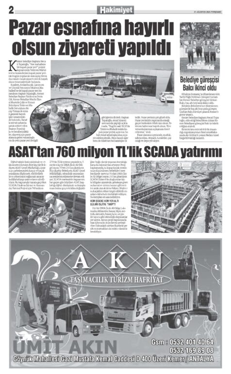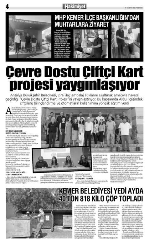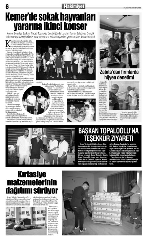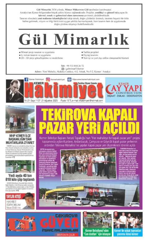 21 AĞUSTOS 2025 KEMER HAKİMİYET GAZETESİ