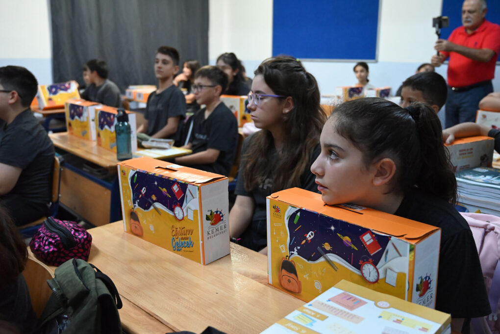 Programda öğrencilere, Kemer Belediyesi tarafından okullara dağıtılan ücretsiz kırtasiye malzemeleri ve ücretsiz ders kitapları dağıtıldı.