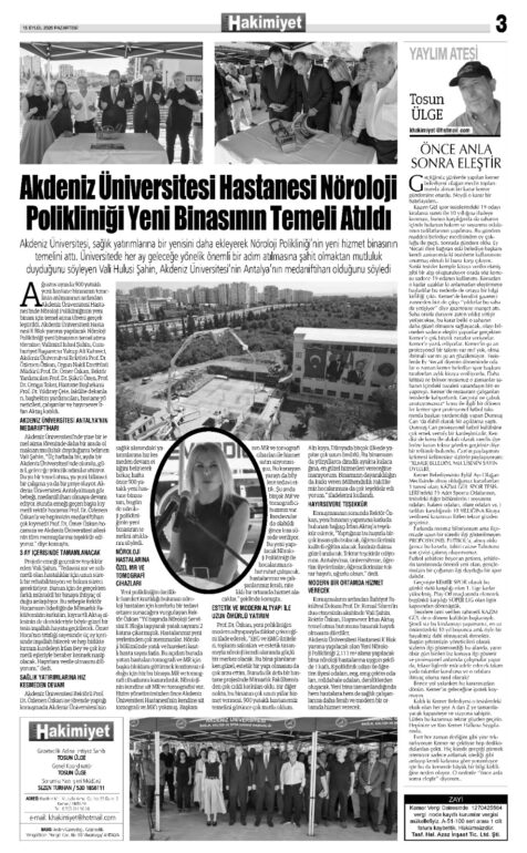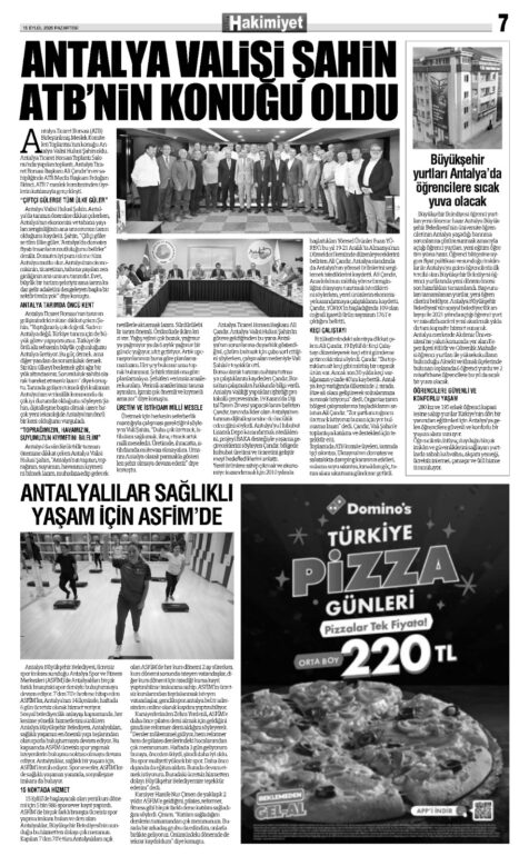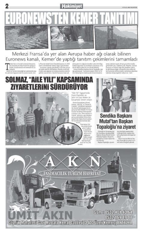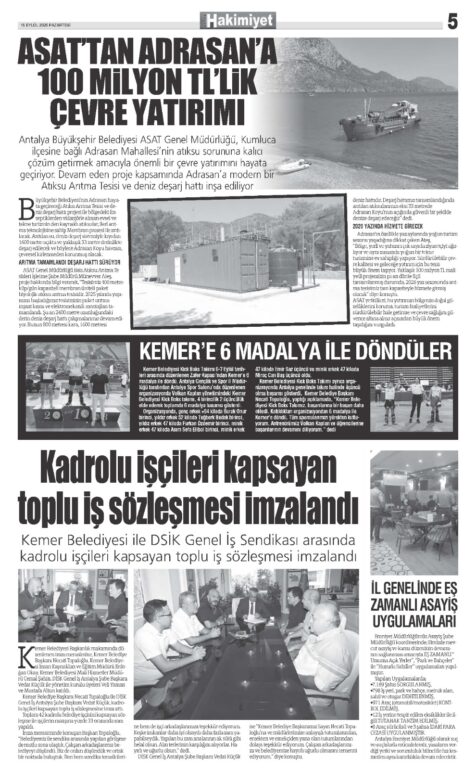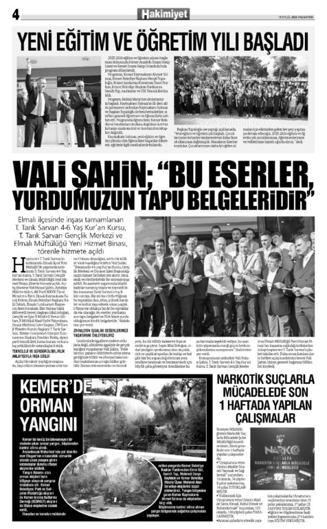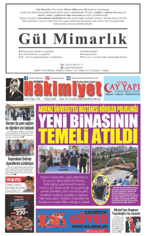 15 EYLÜL 2025 KEMER HAKİMİYET GAZETESİ