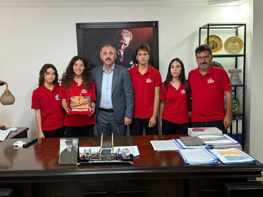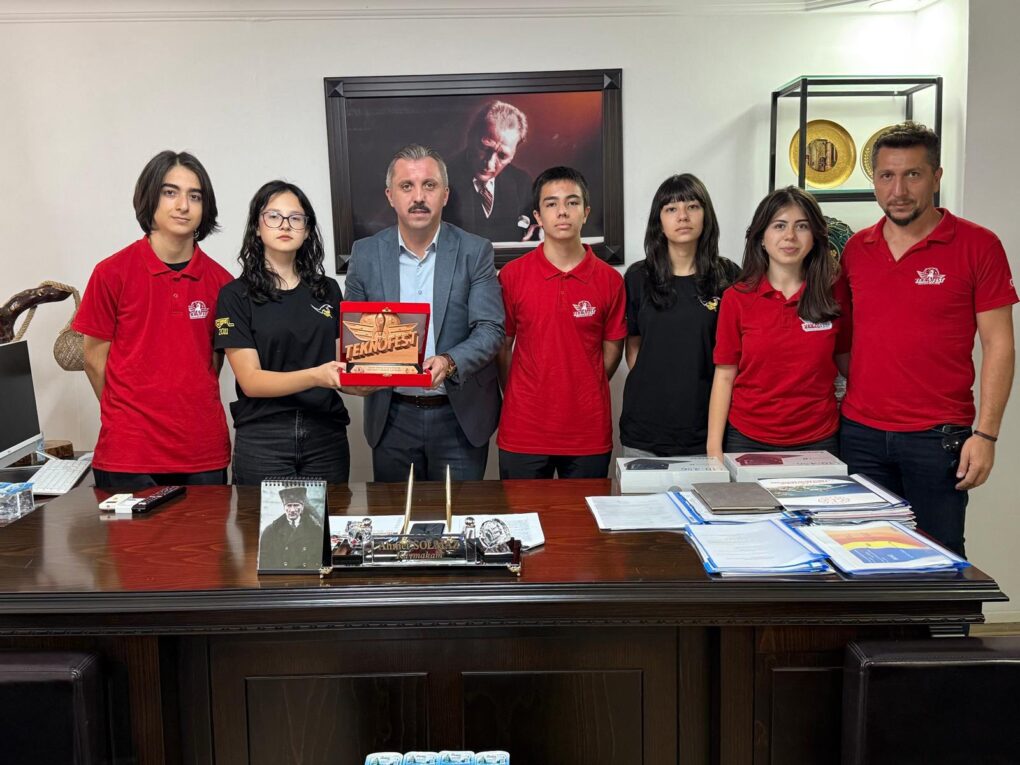 Kaymakam Ahmet Solmaz, öğrencileri ve öğretmenleri başarılarından dolayı kutlayarak, bilime ve teknolojiyi geliştirme yolunda gösterdikleri azim ve gayreti herkes için örnek teşkil ettiğini vurguladı; başarılarının devamını dileyip hediyelerini takdim ederken, bu gençlerin bilime yön vererek ilçemizin ve ülkemizin gurur kaynağı olduğunu ifade etti.