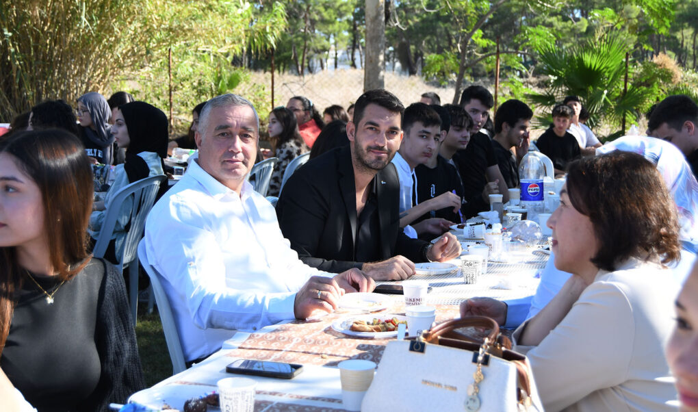 Kemer Belediyesi Ahmet Erkal Destek Eğitim Kursu’nda üniversite sınavına ücretsiz olarak hazırlanan 400 öğrenci, kurstaki öğretmenlerle beraber Kemer Belediye Başkanı Necati Topaloğlu’nu yemekte misafir etti.