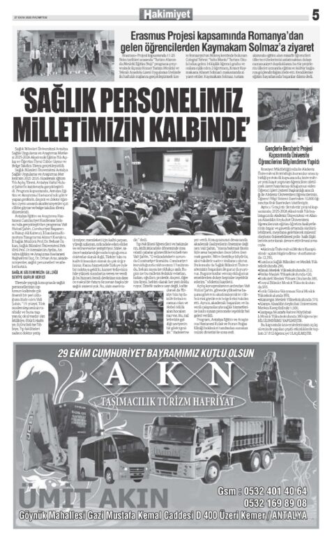 27 EKİM 2025 KEMER HAKİMİYET GAZETESİ