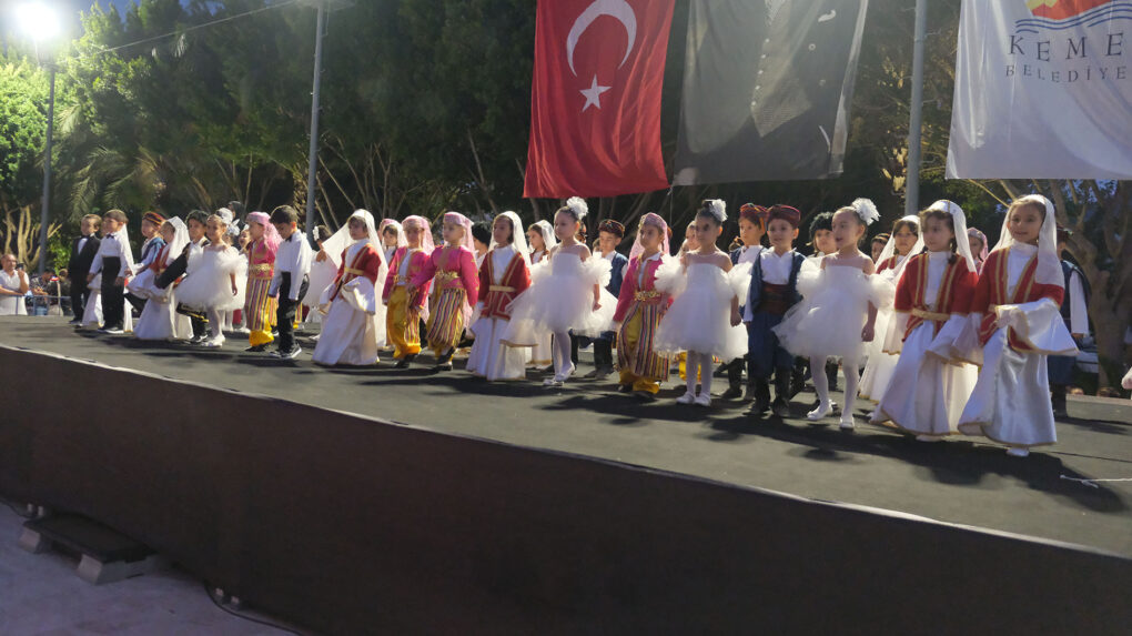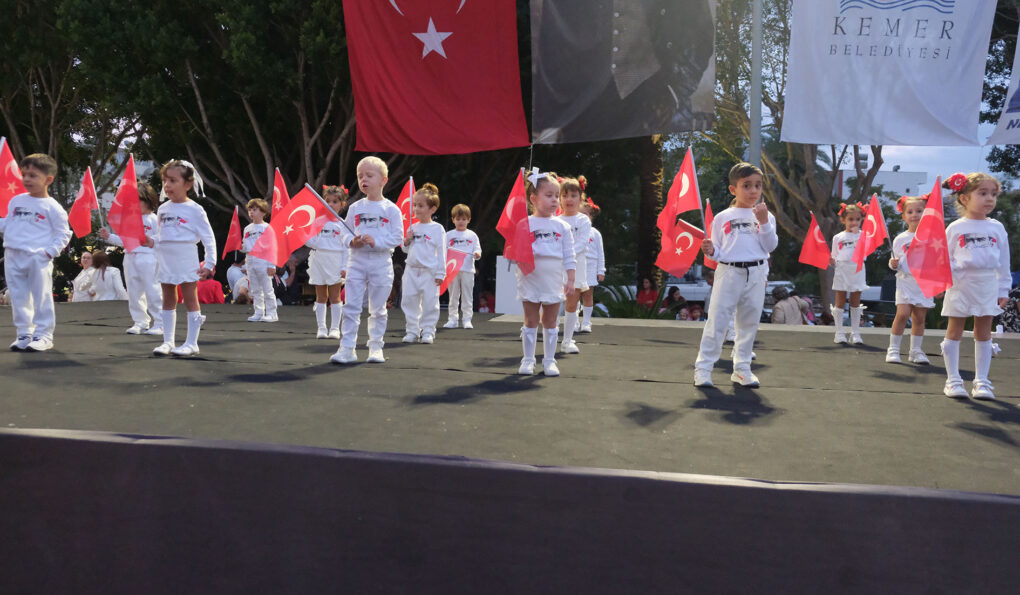 Kemer Belediyesi Ülker-Orduvar Akman Kreş ve Gündüz Bakımevi’de eğitim gören minik öğrenciler, 29 Ekim Cumhuriyet Bayramı kutlamaları kapsamında gösteri sundu.