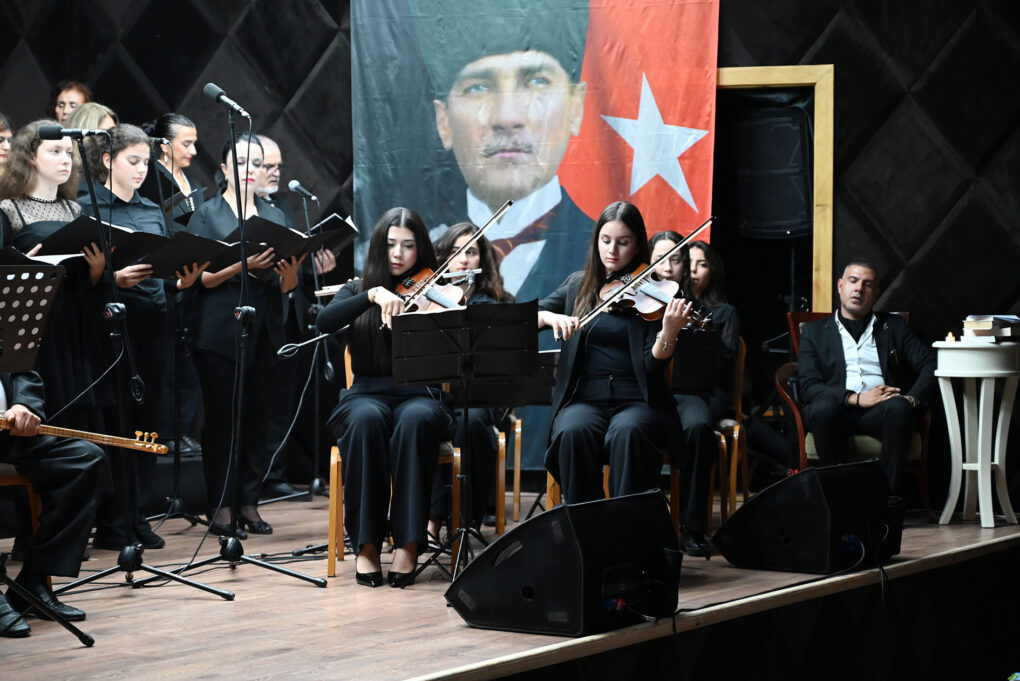 Anlatıcılığını Kemer Uğur Okulları Müdürü İdris Bayram’ın yaptığı konserde orkestra, Büyük Önder Atatürk’ün sevdiği türküleri seslendirdi.