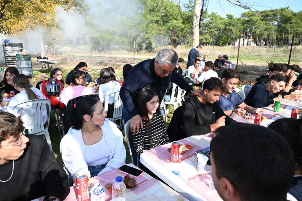 Başkan Topaloğlu daha sonra öğrencilerle tek tek selamlaşarak sohbet etti. Öğrencilerin bir ihtiyacı olup olmadığını soran Başkan Topaloğlu, mangalın başına geçerek öğrencilere köfte ve sucuk pişirerek, ikramda bulundu.