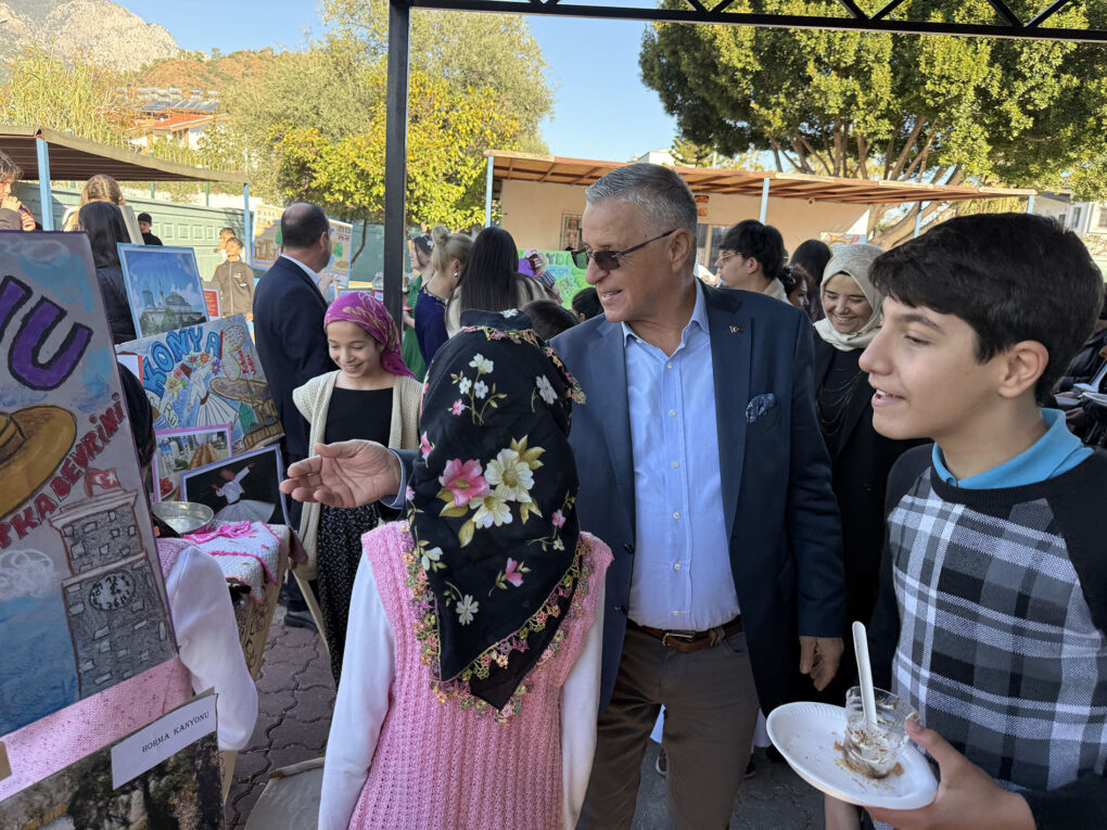 Kemer Belediye Başkanı Necati Topaloğlu, Kemer Hakkı Saygan Hacı Hafize Saygan 3 Ortaokulu bahçesinde okul yönetimi tarafından düzenlenen “Bana Ülkeni Tanıt Festivali’ne katıldı.