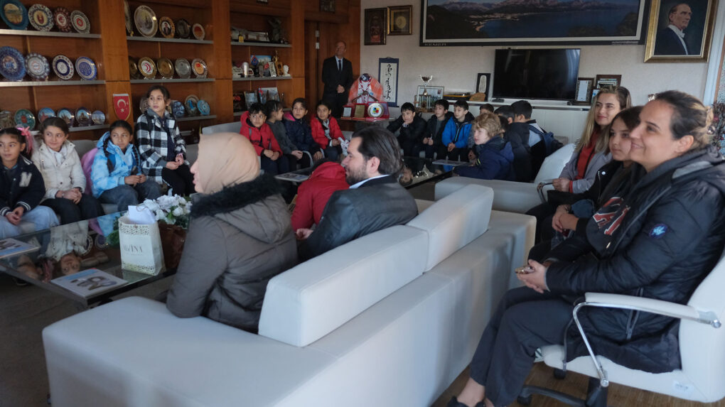 Kepez ilçesinde yer alan Mimar Sinan İlkokulu 4/F sınıfı öğrencileri, Sınıf Öğretmeni Şennur Aktaş ve Rehberlik Öğretmeni Savaş Savran eşliğinde Kemer Belediyesi Kültür Evi’ni ziyaret etti. Öğrenci ve öğretmenler, ziyaret öncesi Kemer Belediye Başkan Vekili Sema Özdemir’i makamında ziyaret ederek sohbet etti.