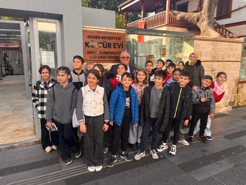 Kemer’in tarihine ışık tutan Kültür Evi ile ilgili Ramazan Kar’dan bilgi alan öğrenciler, program sonrası hatıra fotoğrafı çektirdi.