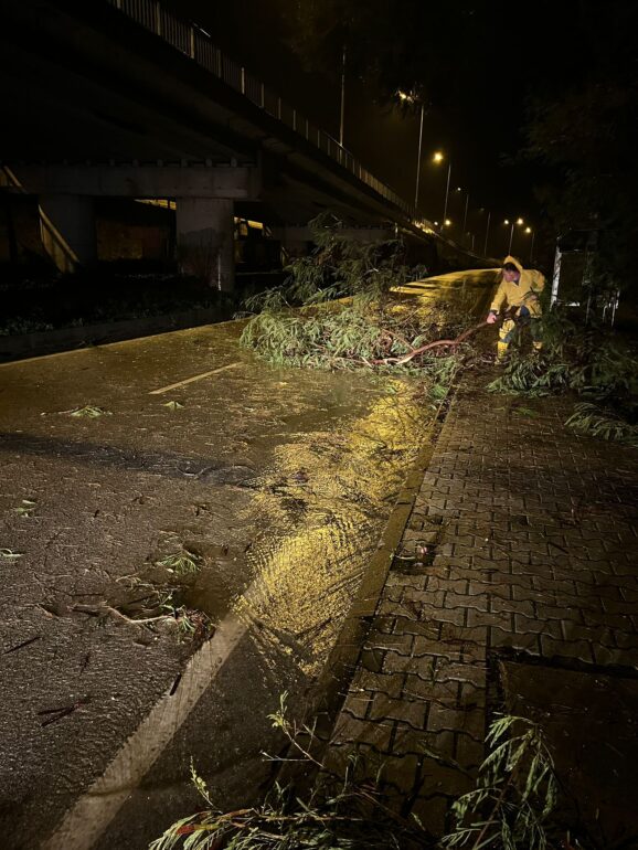 Antalya genelinde fırtına nedeniyle ağaç devrilmeleri ve çatı uçmaları yaşanırken; Antalya Büyükşehir Belediyesi, ilçe belediyeleri, AFAD ve ilgili kurum ekipleri sahada su tahliye, temizlik ve hasar tespit çalışmalarını sürdürüyor.