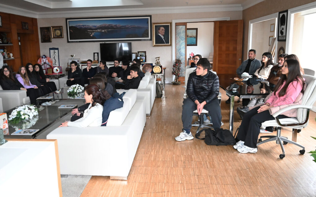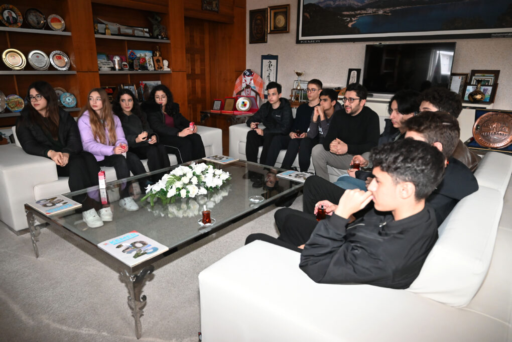 Göynük Fen Lisesi İle Robert Koleji iş birliğince sosyal sorumluluk projesi olan CIP’e katılan öğretmen ve öğrenciler, Kemer Belediye Başkanı Necati Topaloğlu’nu makamında ziyaret ederek proje hakkında bilgi verdi.