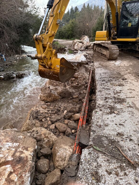 Kemer Belediyesi Fen İşleri Müdürlüğü ekipleri, şiddetli yağışlar nedeniyle Kuzdere Mahallesi Dere Caddesi’nde çöken yolu tamir ederek yolu trafiğe açtı.