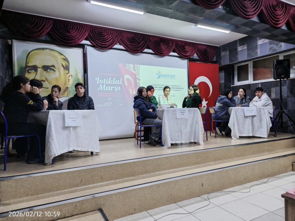 Milli Eğitim Bakanlığımız tarafından Ülkemiz genelindeki tüm liselerde okuyan öğrenciler arasında İstiklal Marşı ve Mehmet Akif Ersoy Konulu Bilgi yarışmasının İlçe Finali 12.02.2026 tarihinde -bugün- gerçekleştirildi.