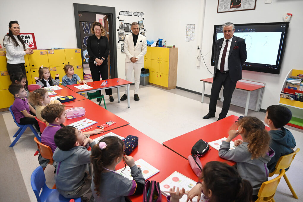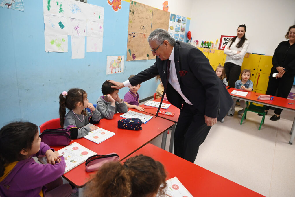 Okul ziyaretinde öğretmenlerle selamlaşan Başkan Topaloğlu, program kapsamında ilk olarak ana sınıfı öğrencilerini ziyaret etti. Miniklerle sohbet eden Başkan Topaloğlu, onların heyecanına ortak oldu.