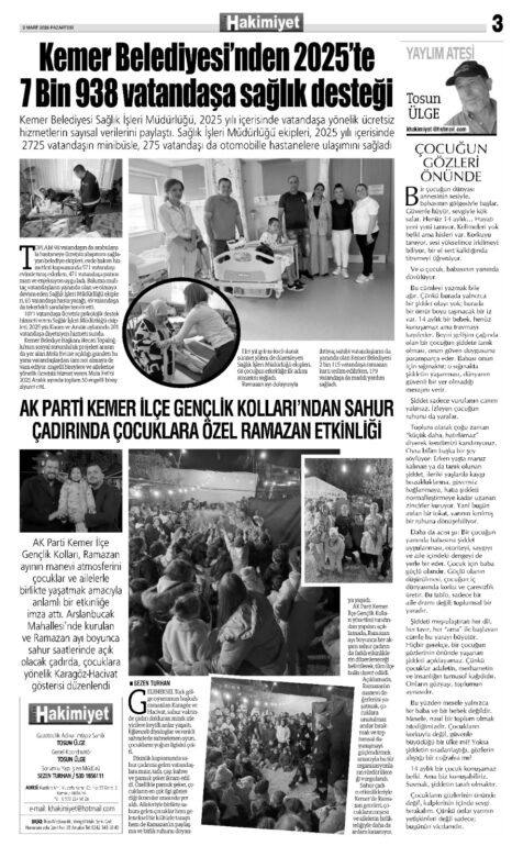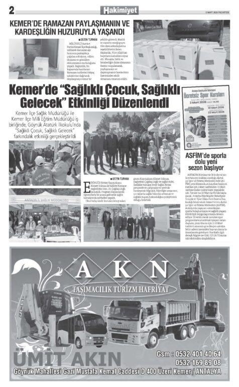 2 MART 2026 KEMER HAKİMİYET GAZETESİ