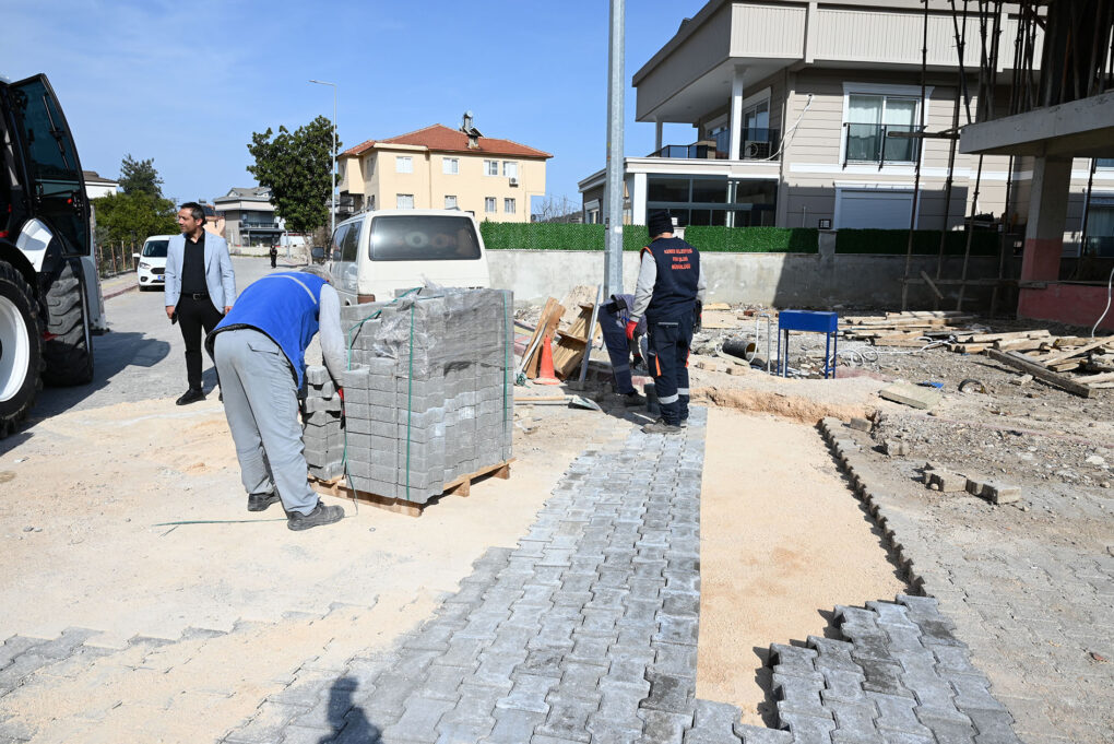 Kuzdere Mahallesi’nde yer alan kapalı pazar alanı yanında ve 1040 Sokak’ta kilitli parke taşı çalışmalarına ara vermeden devam eden belediye ekipleri, çalışmaların en kısa sürede tamamlanacağını belirtti.