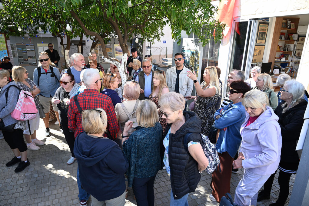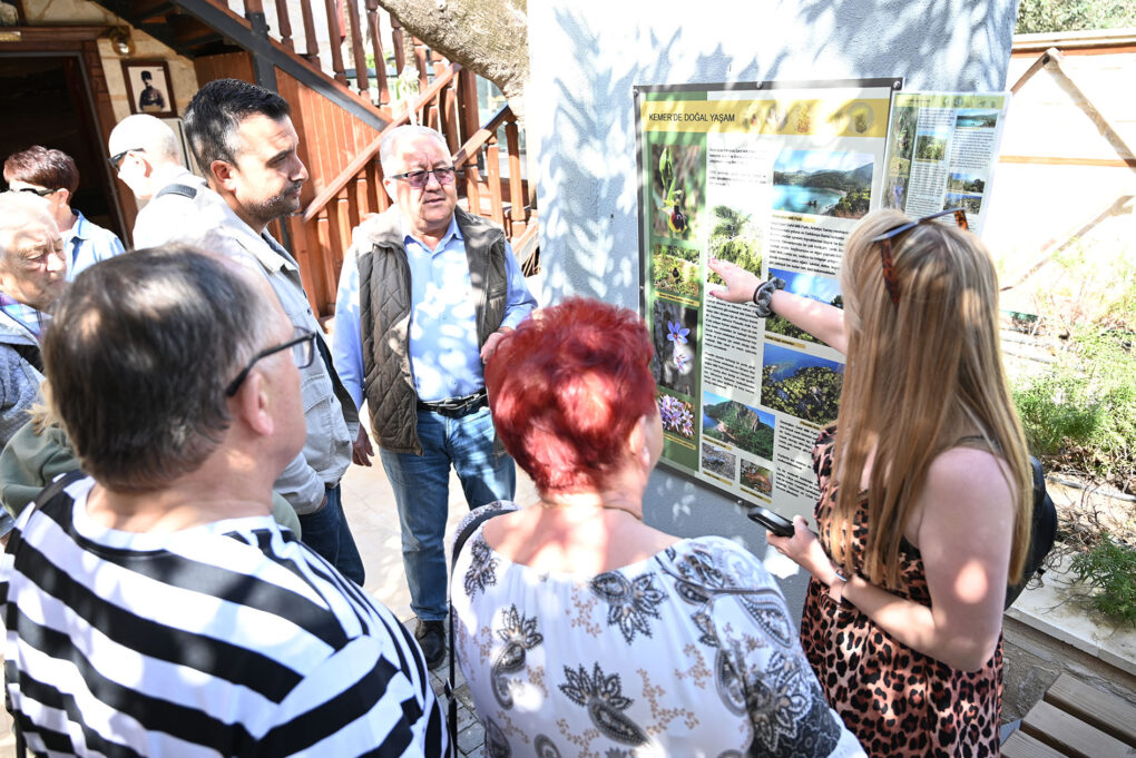 Kültür Evi’nde Kemer’in eski yaşamını anlatan değerli eşyalar, fotoğraflar, objeler ve günlük kullanılan kıyafetleri tek tek inceleyen Polonyalı kafile, Kültür Evi Sorumlusu Ramazan Kar’dan bilgi aldı.