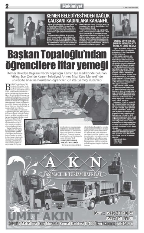 11 Mart 2026 Kemer Hakimiyet Gazetesi