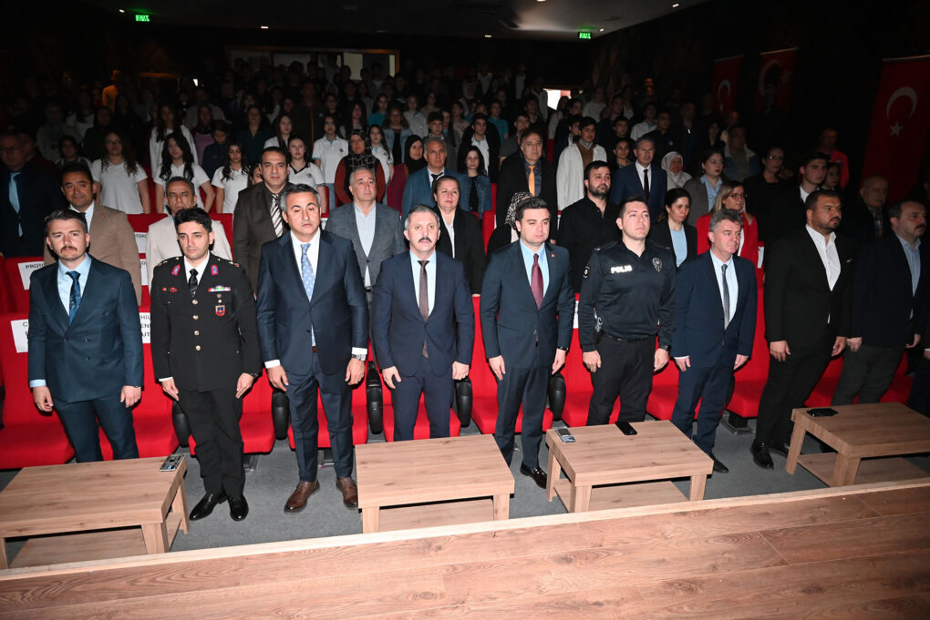 Saygı duruşunda bulunulmasının ardından İstiklal Marşı’nın okunmasıyla başlayan program, İstiklal Marşı’nın kabulünü anlatan sinevizyon gösterisiyle devam etti.