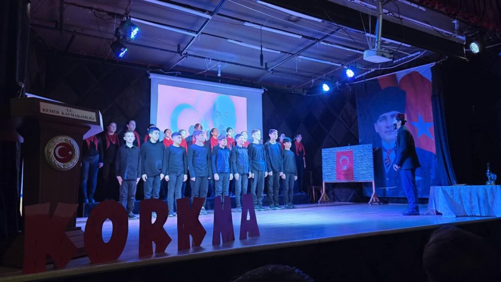 Kemer Kaymakamlığımız himayelerinde, Kemer İlçe Milli Eğitim Müdürlüğü tarafından Milli Eğitim Bakanlığımızın “Korkma, Gençliğin Ruhu Burada!” temasıyla düzenlenen ve Rukiye Koç Ortaokulu tarafından hazırlanan program; saygı duruşu ve İstiklal Marşı’nın okunmasıyla başladı.