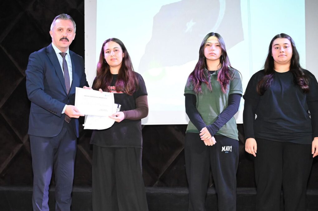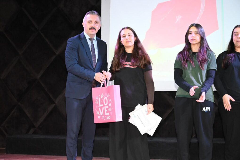 Program, “Korkma, Gençliğin Ruhu Burada” temalı kompozisyon yarışmasında ilçe birincisi olan eserin okunmasının ardından dereceye giren öğrencilere ödüllerinin Kaymakamımız Sayın Ahmet Solmaz tarafından takdim edilmesiyle sona erdi.