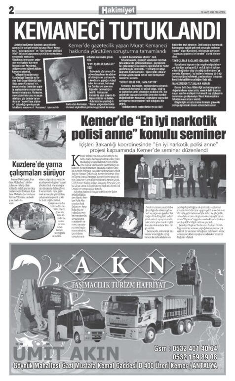 30 MART 2026 KEMER HAKİMİYET GAZETESİ