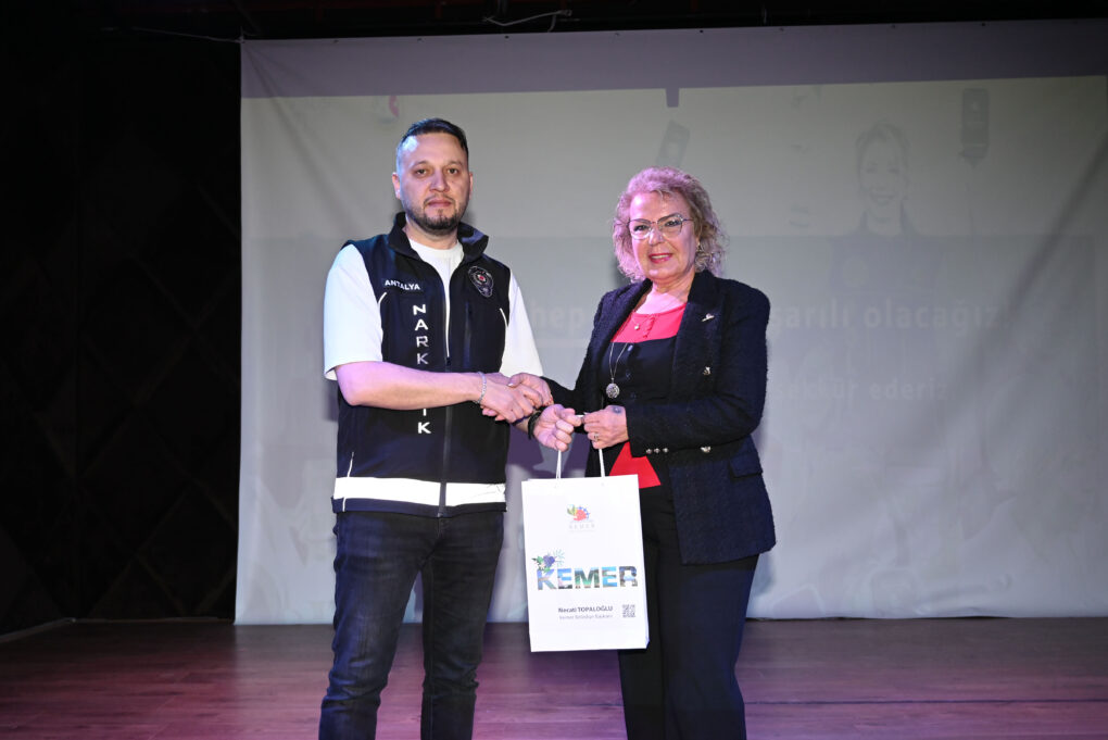 Üstündağ, katılımcılara Kemer Belediye Başkanı Necati Topaloğlu’nun selamını ileterek, verdiği seminerden dolayı Antalya Narkotik Suçlarla Mücadele Şube Müdürlüğü’nden Narko Rehber Polis Memurları Arif Erdem ve Ayşe Kalpakçı’ya teşekkür ettiğini dile getirdi.