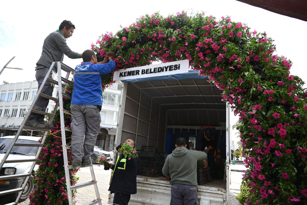 Kemer yaz sezonuna hazırlanıyor: İlçe petunyalarla süsleniyor